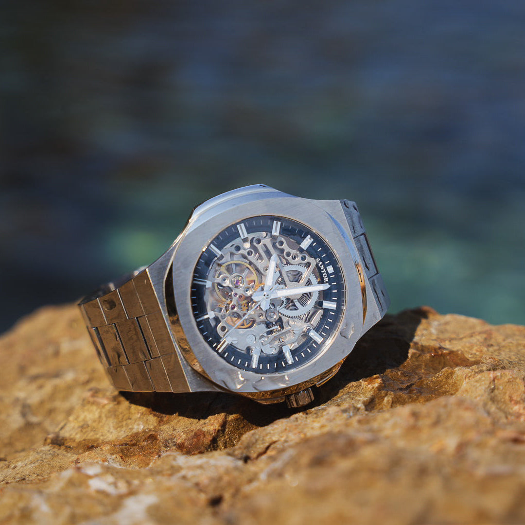 Chez Santora, nous croyons que le temps n’est pas seulement mesuré : il se ressent. Genesis s’inspire de l’étoile polaire, repère immuable dans la nuit, symbole de découverte et de constance. Son mouvement automatique révèle la beauté d’une mécanique vivante, créée pour durer, guider et accompagner chaque moment important.